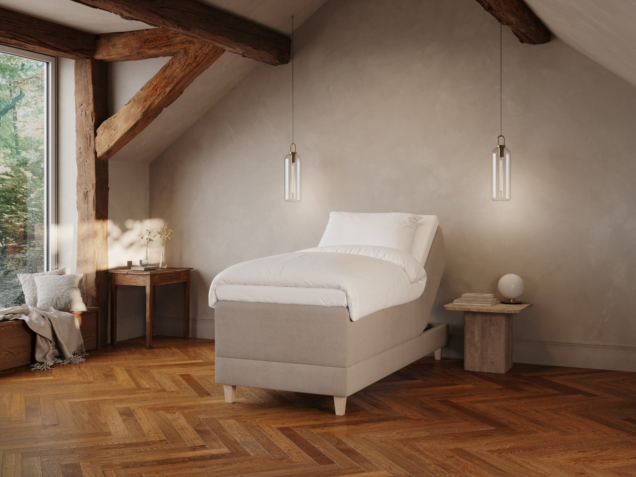Aura er ikke bare en seng, men en invitation til ekstraordinær søvn hver eneste nat. Med tre overdådige komfortlag og det avancerede dobbelt Ergonomic+ fjedresystem får du kompromisløs støtte præcis dér, hvor din krop behøver det mest.