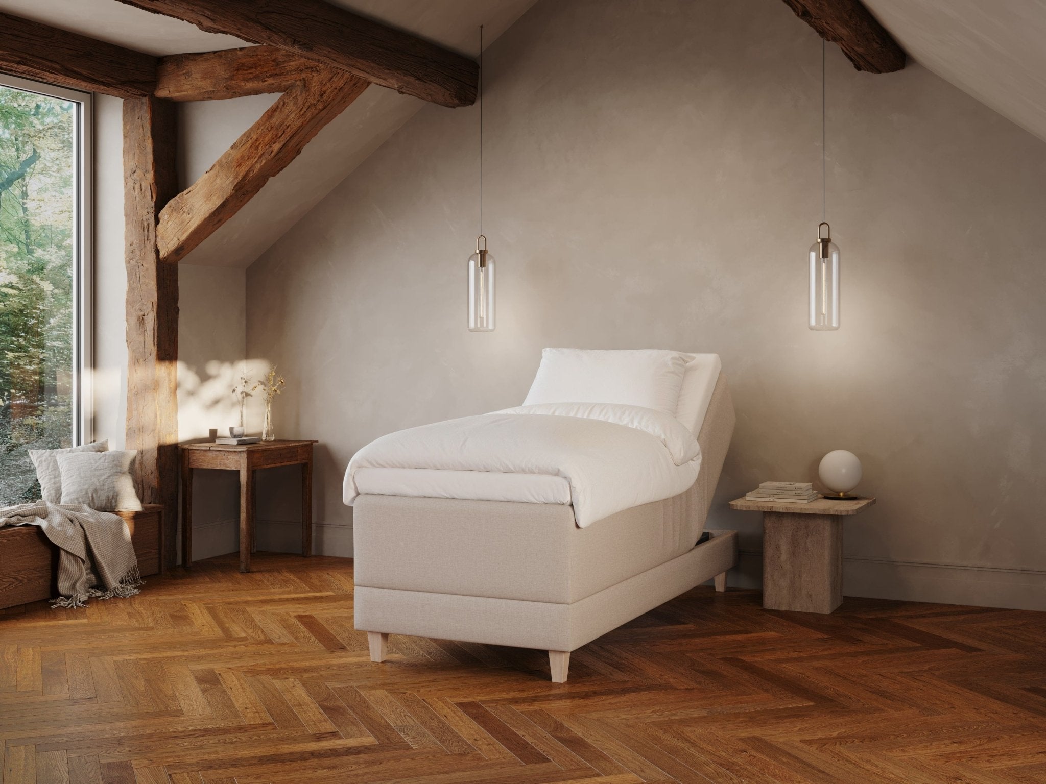 Aura er ikke bare en seng, men en invitation til ekstraordinær søvn hver eneste nat. Med tre overdådige komfortlag og det avancerede dobbelt Ergonomic+ fjedresystem får du kompromisløs støtte præcis dér, hvor din krop behøver det mest.
