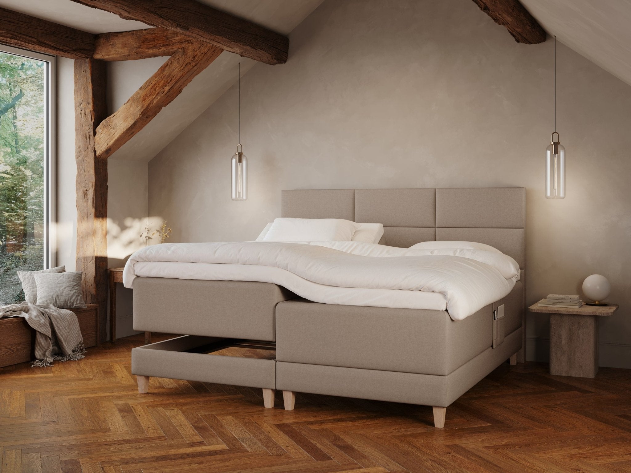 Aura er ikke bare en seng, men en invitation til ekstraordinær søvn hver eneste nat. Med tre overdådige komfortlag og det avancerede dobbelt Ergonomic+ fjedresystem får du kompromisløs støtte præcis dér, hvor din krop behøver det mest.