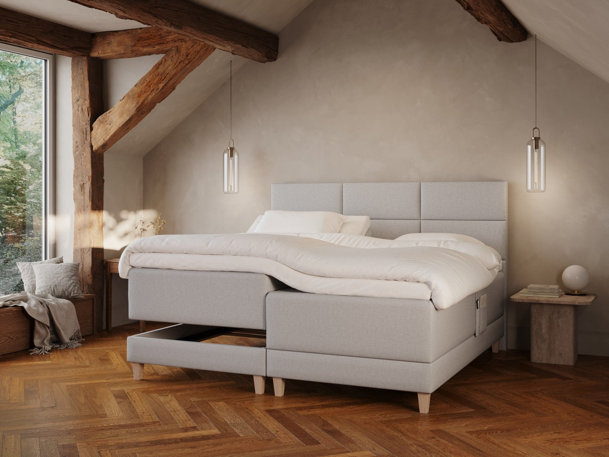 Aura er ikke bare en seng, men en invitation til ekstraordinær søvn hver eneste nat. Med tre overdådige komfortlag og det avancerede dobbelt Ergonomic+ fjedresystem får du kompromisløs støtte præcis dér, hvor din krop behøver det mest.