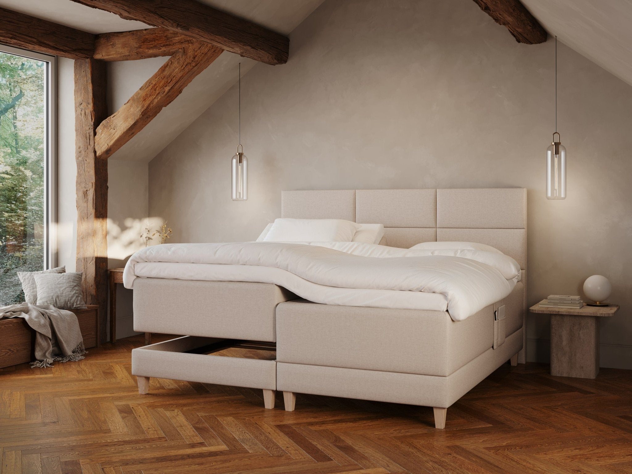 Aura er ikke bare en seng, men en invitation til ekstraordinær søvn hver eneste nat. Med tre overdådige komfortlag og det avancerede dobbelt Ergonomic+ fjedresystem får du kompromisløs støtte præcis dér, hvor din krop behøver det mest.