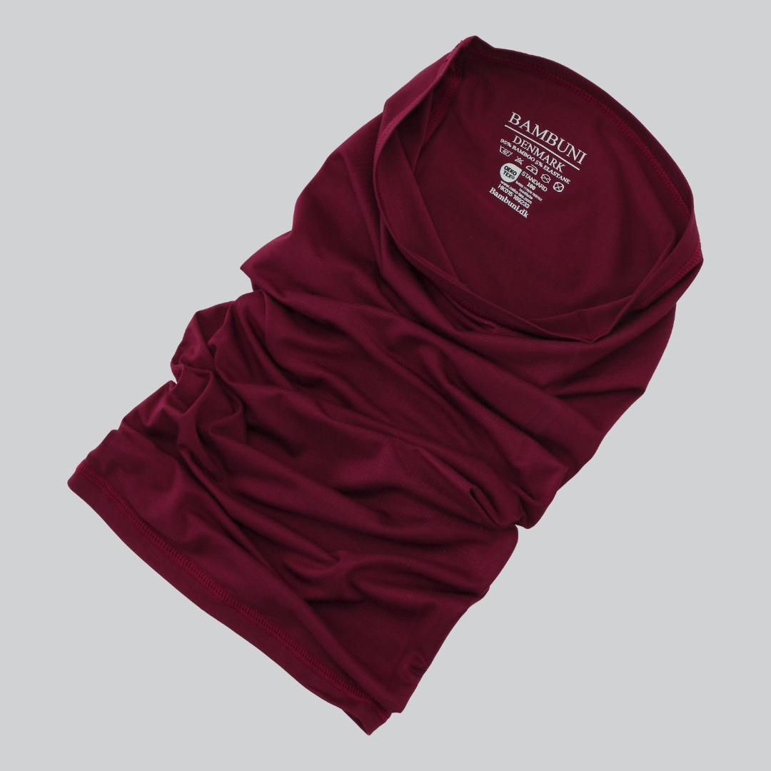 Ãn bordeaux halsedisse til alle aktiviteter Med vores bambus halsedisse i bordeaux får du en multifunktionel og exceptionelt komfortabel halsedisse fyldt med gode egenskaber. Det høje bambusindhold betyder for dig, at den er både temperaturregulerende, s