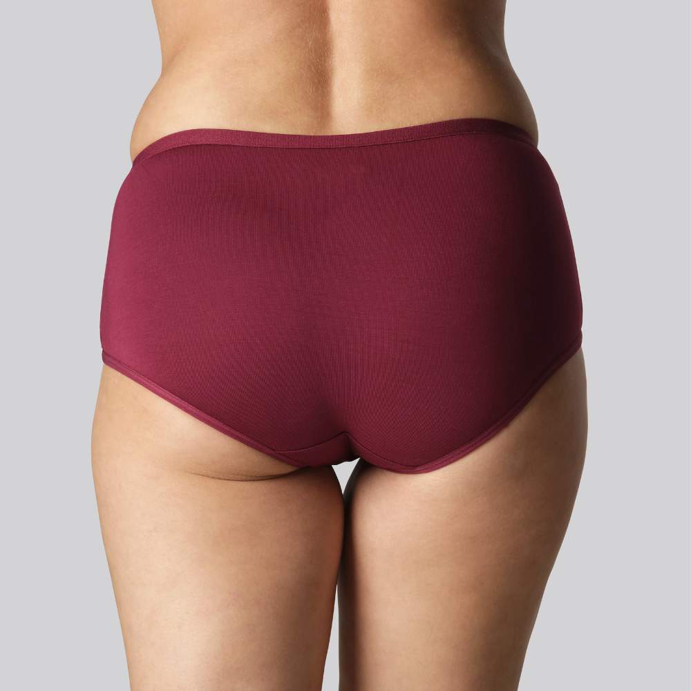 Bløde bordeaux bambus hipster trusser til kvinder Mangler du en feminin farve som samtidig ikke lader dig gå på kompromis med komfort? Bare rolig! Det sørger vores bambus hipster trusser for, at du heller ikke behøver. Ballerne er dækket og den har en høj