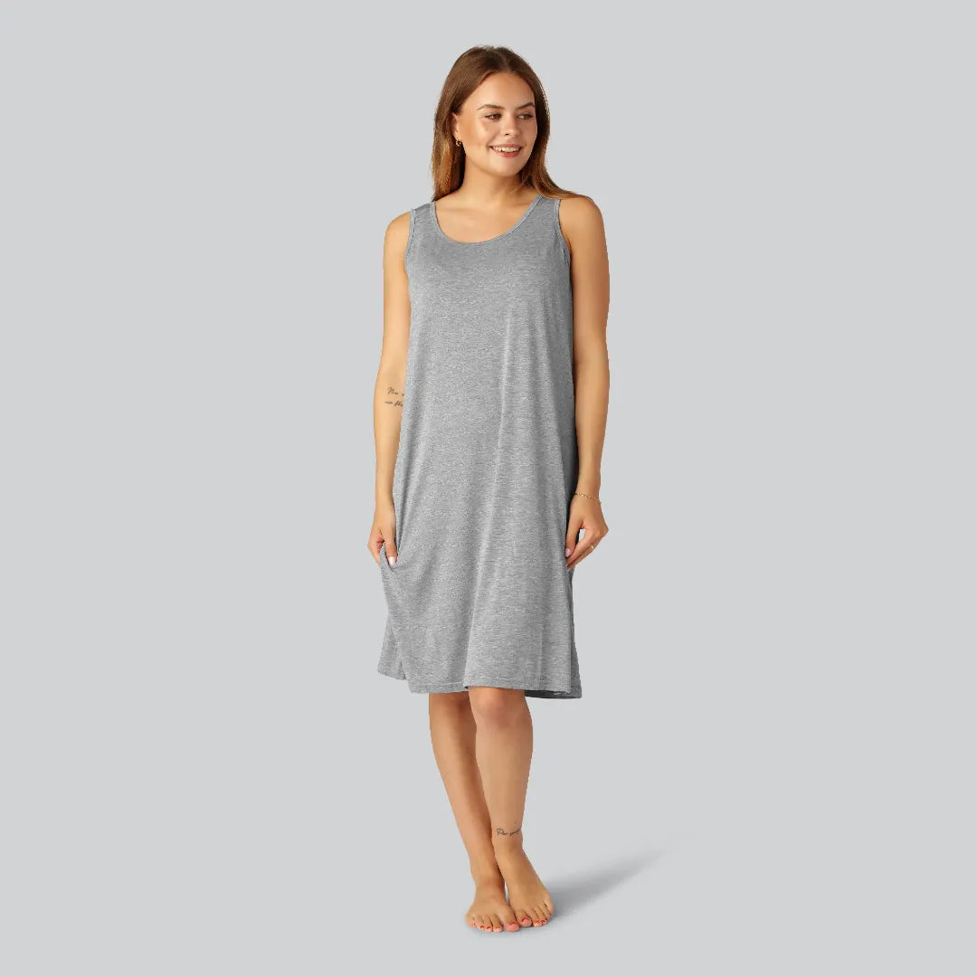 Silkeblød og let lysegrå bambus natkjole med brede stropper Denne lysegrå bambus natkjole er skabt til dig, der værdsætter enkelhed kombineret med funktionelle egenskaber. De brede stropper giver god støtte, mens bambusviskosen hjælper med at regulere din