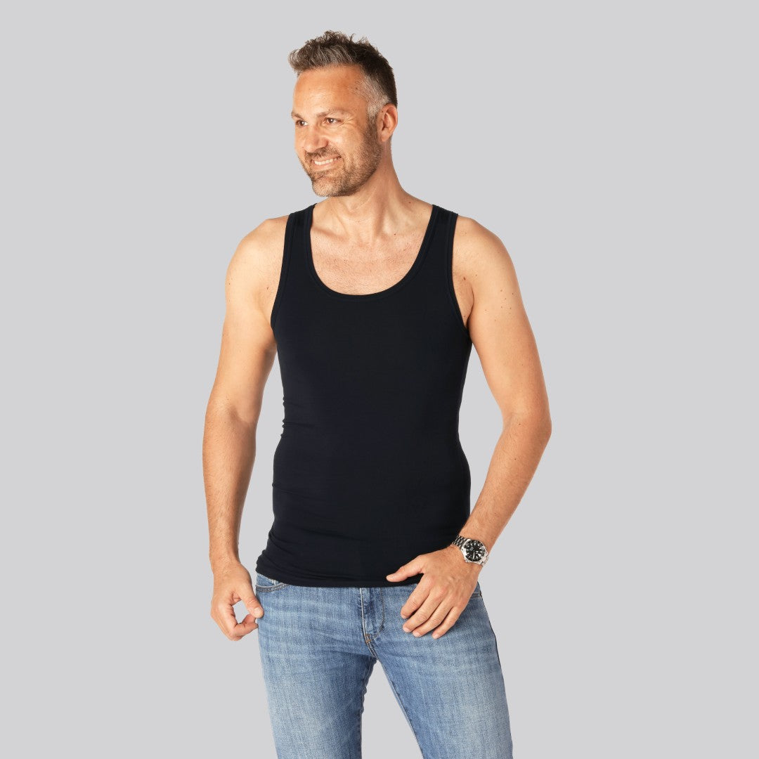 Stilfuld og funktionel navy blå bambus undertrøje Navy blå er en klassisk farve, der passer til enhver garderobe, hvad end du har den på under en skjorte eller som en selvstændig beklædningsgenstand på en afslappet dag. Vores navy bambus undertrøje er ska