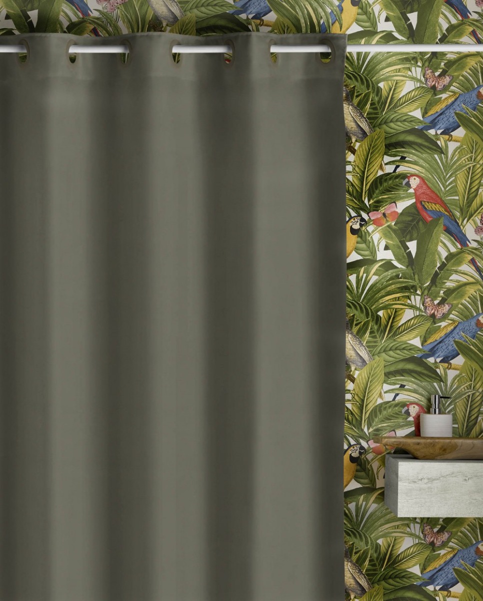 Bruseforhænget er lavet i 100% polyester, er vandafvisende og behandlet så det er mug afvisende. Du behøver ikke de irriterende plastik kroge, da vores bruseforhæng er med indbygget kroge. Det er nemt at hænge op, og det glider nemt frem og tilbage på sta