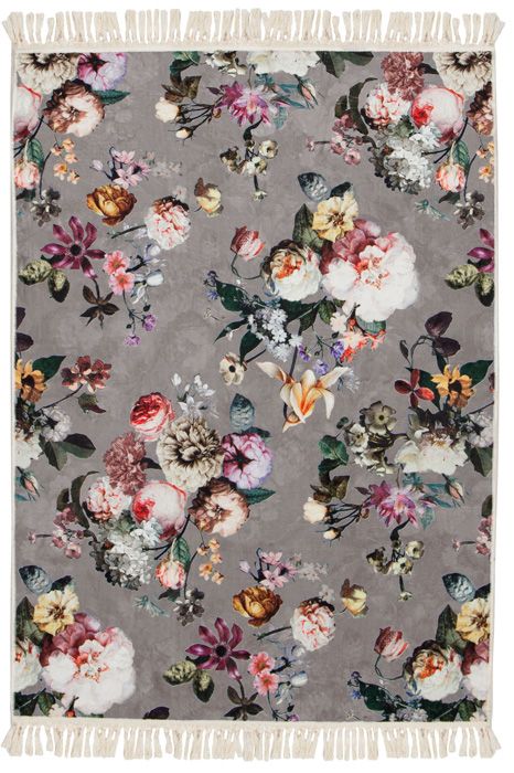 Essenza Fleur Gulvtæppe Taupe Gulvtæppe Fleur taupe er et smukt gulvtæppe og har personlighed, med alle de smukke blomster som et gammelt maleri. Du får Fleur gulvtæppet i taupe, gul, hvid, rosa og lilla nuancer, der udspiller sig på en dyb taupe baggrund