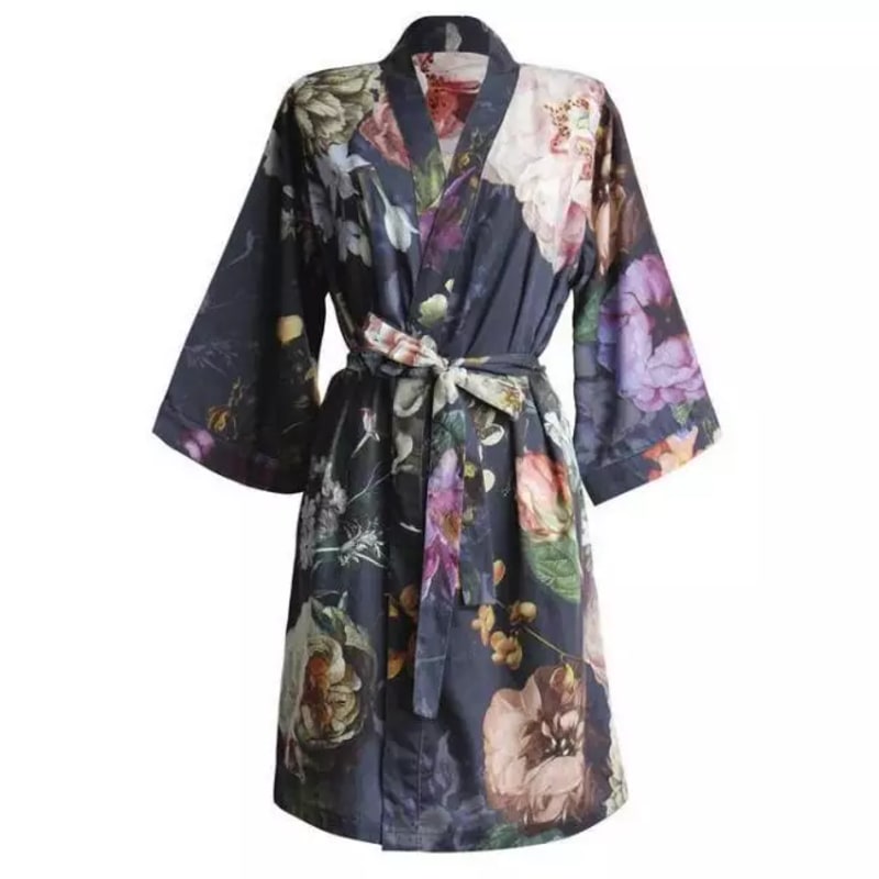 M Fleur Kimono Nightblue er den perfekte måde at forkæle dig selv efter et varmt bad eller en hyggelig aften derhjemme. Denne luksuriøse badekåbe er fremstillet af 100% bomuld satin, som giver en blød og behagelig følelse mod huden.