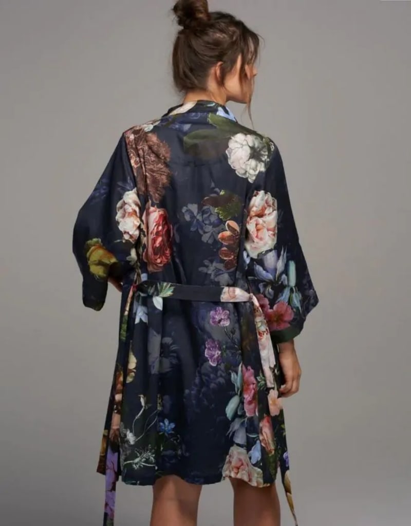 XS Fleur Kimono Nightblue er den perfekte måde at forkæle dig selv efter et varmt bad eller en hyggelig aften derhjemme. Denne luksuriøse badekåbe er fremstillet af 100% bomuld satin, som giver en blød og behagelig følelse mod huden.