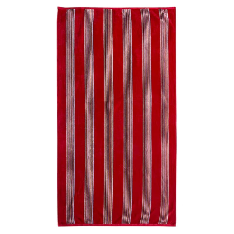 Dette Franske strandhåndklæde i farven rød vil være det perfekte tilbehør til en dag på stranden. Lavet af 100% bomuld, vil dette håndklæde føles blødt og behageligt mod huden. Det har en størrelse på 90x170cm, hvilket gør det stort nok til at ligge på el