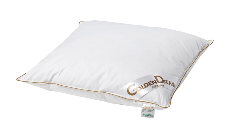 Oplev ultimativ komfort og luksus med vores Golden Dream Moskus dunpude i størrelse 60×63 cm. Denne ekstra fyldige pude, produceret af Eurodun, er fyldt med 60% Moschus dun og 40% små fjer, hvilket giver en samlet vægt på 750/870 gram. Denne høj fast pude