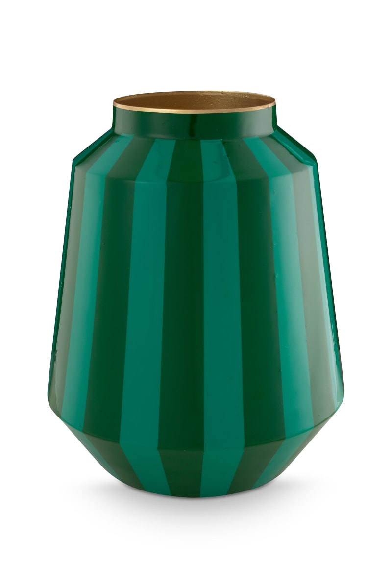 Denne smukke Vase Metal Stripes Green fra Pip Studio er perfekt til at tilføje et strejf af elegance og farve til dit hjem. Vasen er lavet af metal og er 24x29cm i størrelse, hvilket gør den til en perfekt størrelse til at vise din yndlingsbuket eller blo