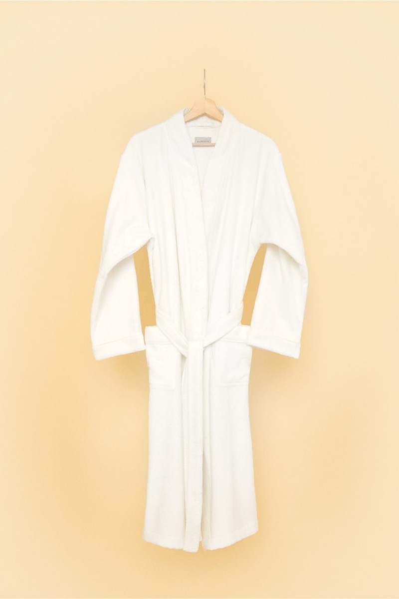 Oplev den ultimative luksus med Pure Bathrobe Ivory L fra Egeria. Lavet af 100% bomuld, denne badekåbe er utrolig blød mod huden, hvilket giver en behagelig og afslappende følelse, hver gang du har den på. Det høje kvalitetsmateriale sikrer, at badekåben