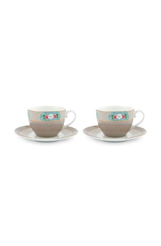 / Set/2 Cups & Saucers Blushing Birds Khaki 280ml