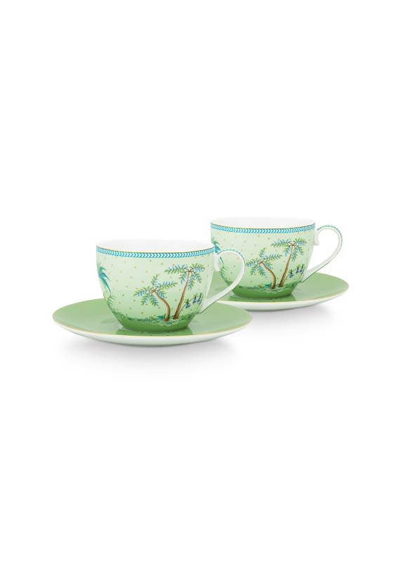 / Set/2 Cups & Saucers Jolie Gold Dots Green 280ml