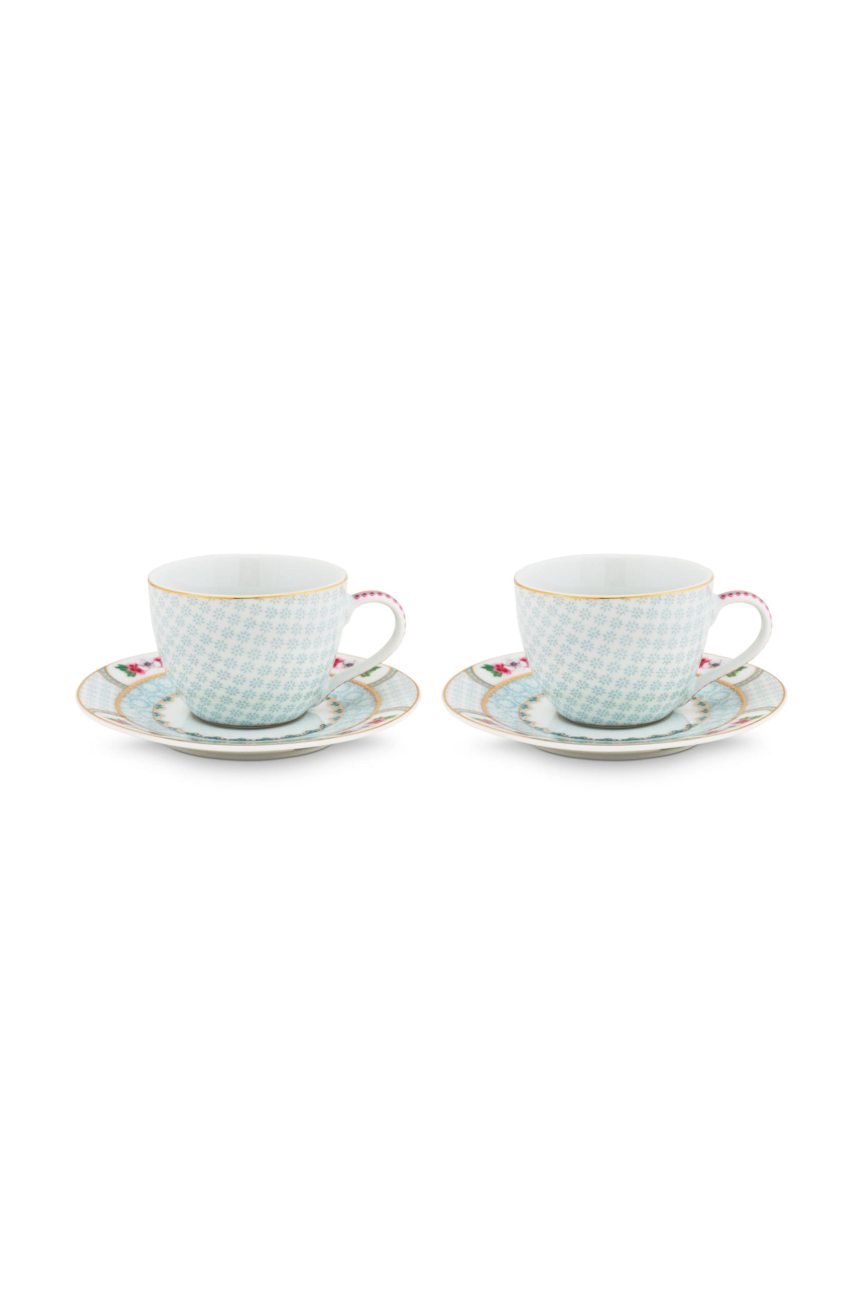 / Set/2 Espresso Cups & Saucers Blushing Birds White 120ml