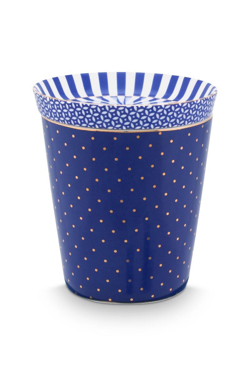 Dette sæt med to dele fra Pip Studio er den perfekte gave til dig selv eller en, du holder af. Kopet er designet med to smukke mønstre, Royal Dots og Tea Tip Blue, der giver et elegant og romantisk udtryk. De er fremstillet af hårdt-pastet porcelæn, også
