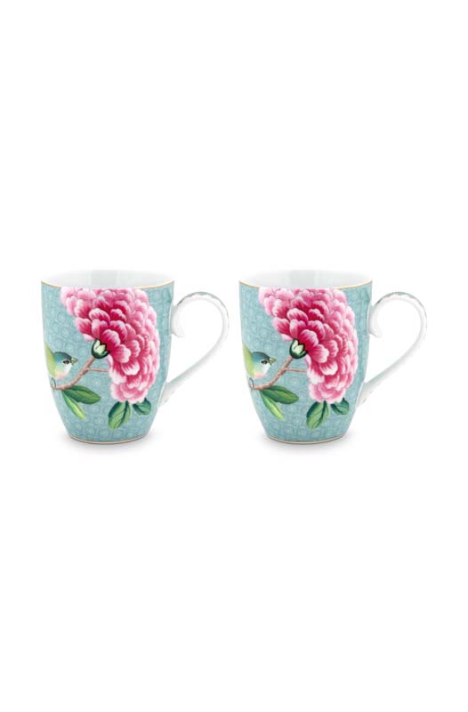 Set/2 Mugs Large Blushing Birds Blue 350ml