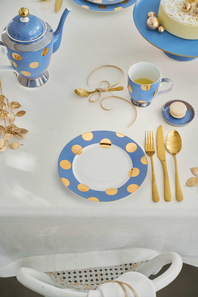 Set/2 Plates Dot Delight Light Blue-Gold 23cm