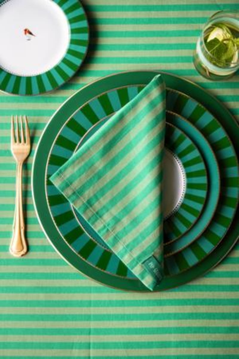 Gør dit middagsbord elegant og indbydende med vores sæt af 4 Pip Studio servietter. Disse smukke servietter er 40×40 cm og har et iøjnefaldende grønt stribet design, der tilfører et friskt og livligt udtryk til ethvert bordarrangement. Lavet af 100% bomul