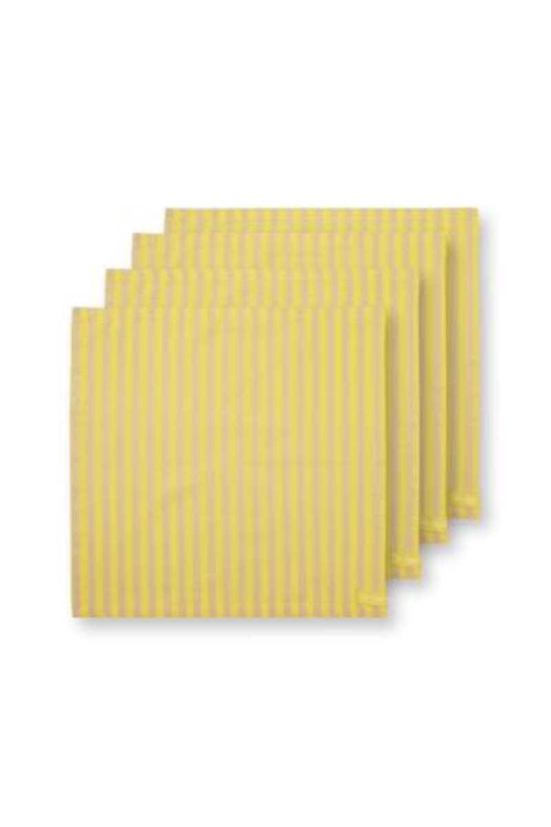 Oplev det ultimative touch af elegance og funktionalitet med vores Set/4 Napkins Stripes Yellow 40x40cm. Fremstillet af 100% bomuld, garanterer disse servietter en blød og behagelig følelse mod huden, samtidig med at de tilføjer et pop af farve til dit sp