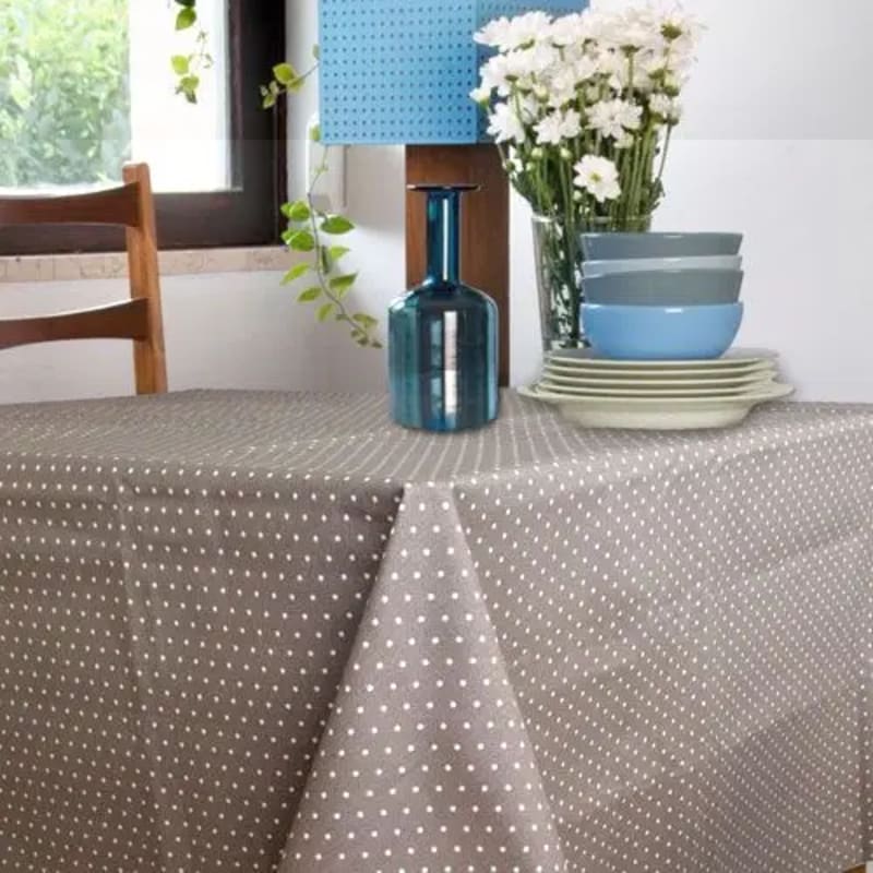 Dæk et flot bord med den lækre Polka textilvoksdug som også er nem at holde pæn og utrolig slidstærk. Polka passer ind i alle hjem, da designet er meget enkel, med flotte sandfarvet prikker på en beige baggrund. Alle vores textilvoksduge er med en tyk tef