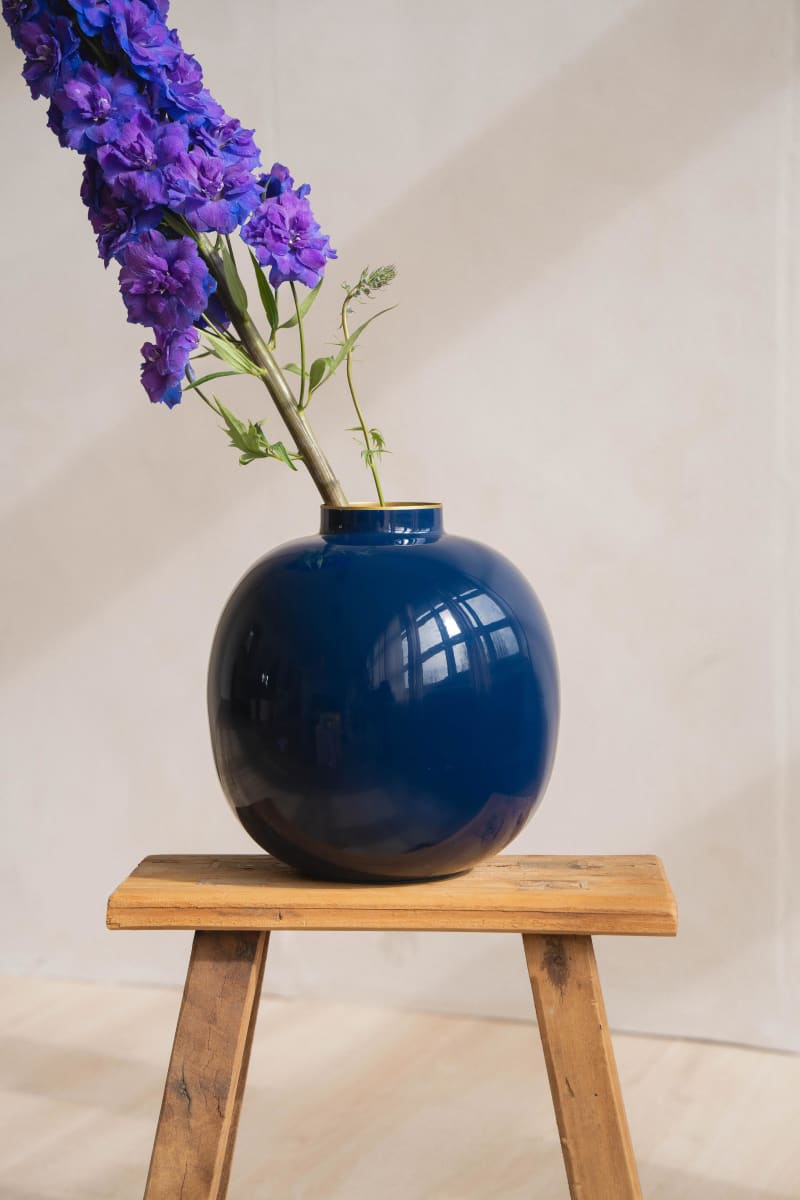 Vase Metal Blue 23cm fra Pip Studio er den perfekte tilføjelse til dit hjem. Denne smukke vase er lavet af metal i en smuk mørkeblå farve, der vil tilføje et strejf af elegance til ethvert rum. Designet af Pip Studio, en mester i Home Decor, er vasen både
