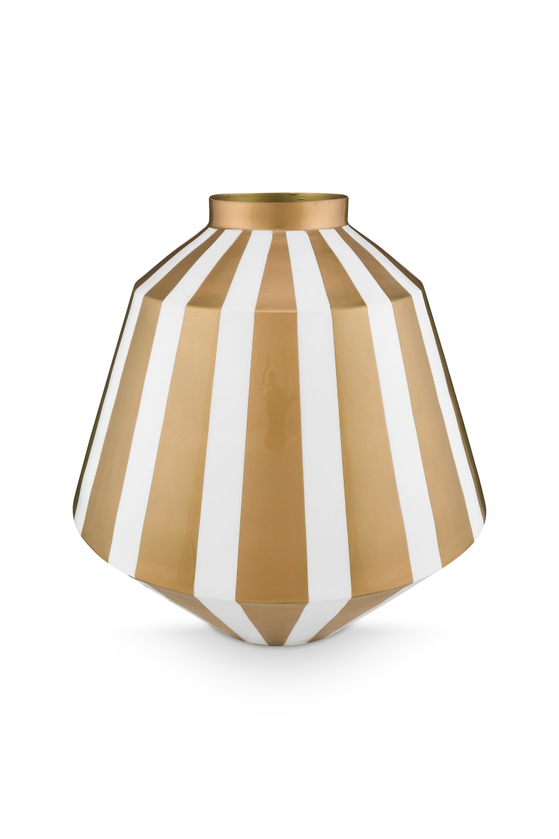 Denne flotte vase fra Pip Studio er en elegant og unik tilføjelse til ethvert hjem. Vasen er designet med en smuk kombination af hvid og guld, der skaber et smukt kontrastfyldt udtryk. Den er fremstillet i metal og har fine striber, der pynter på overflad